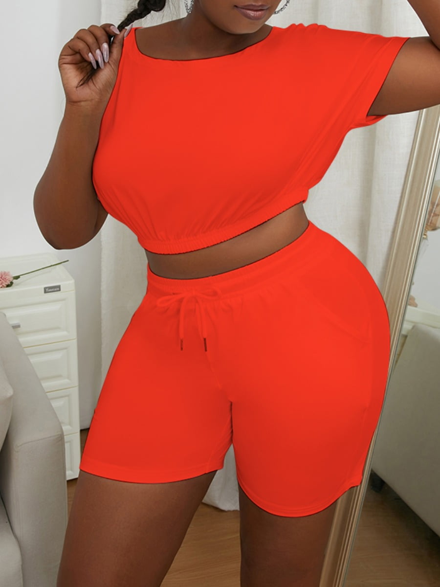 Lovelywholesale Plus Size Boat Neck Drawstring Shorts Set Red Walmart Com